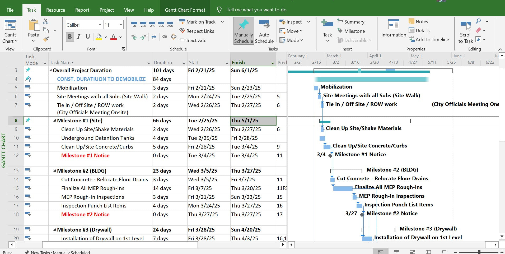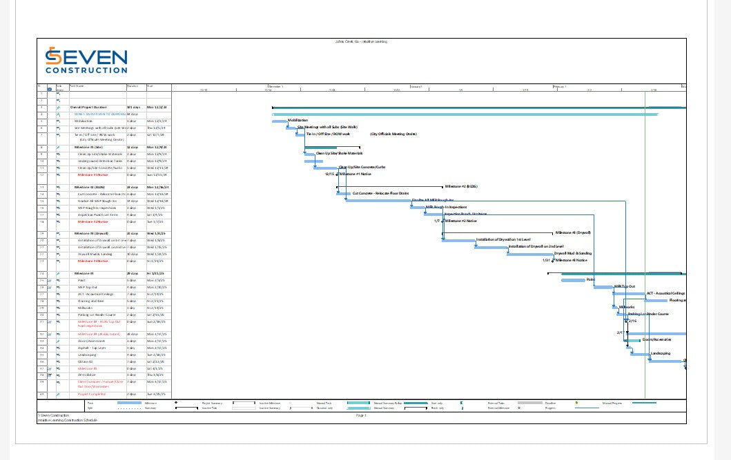 - Comprehensive Project Timeline: Provides a clear breakdown of all project phases, from Mobilization to Final Inspections.