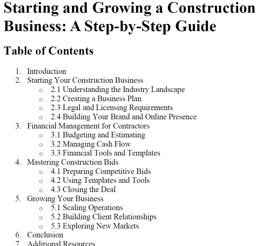 The construction industry offers immense opportunities for entrepreneurs with the skills and ambition to build a successful business. However, starting and scaling a construction company involves navigating unique challenges—from bidding on projects to managing finances and ensuring compliance with industry regulations. This eBook is designed to provide you with practical insights, proven strategies, and actionable templates to set your business up for long-term success.